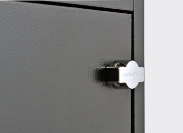 - NoteLocker ist pulverbeschichtet, die Oberfläche ist matt und mit einer Oberflächenstruktur (Textur), die kleinere Schäden und Kratzer verbirgt. Der Schrank sieht daher länger neu aus.