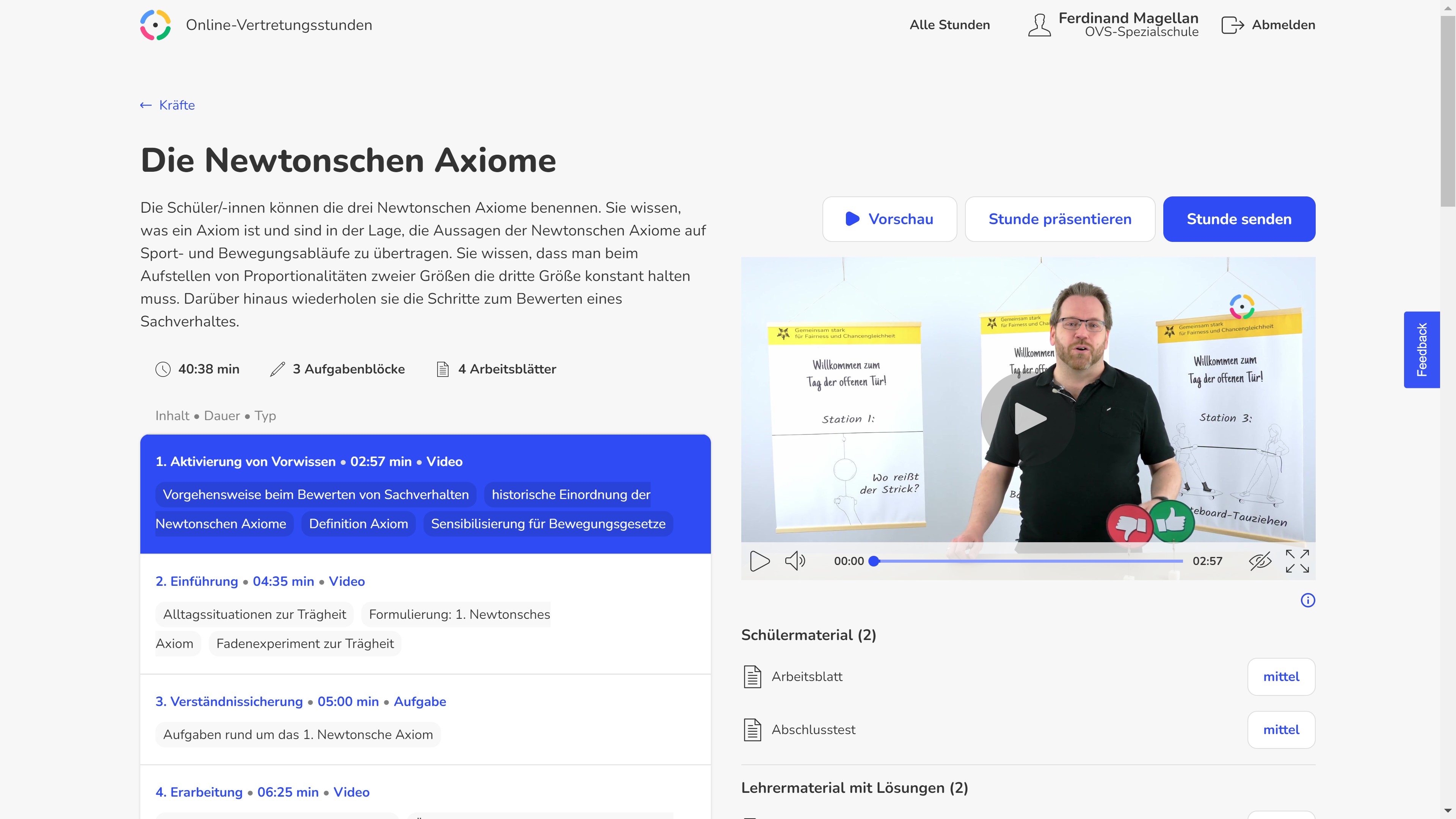 - 100 vollständige Online-Unterrichtsstunden (je 40 min), passend zu allen Lehrplänen und Bildungsplänen der weiterführenden Schulen aller Bundesländer